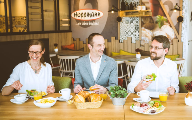 Das Betriebsklima ist familiär, das Team der Backstube kennt die Wünsche der Kunden ebenso gut wie die Verkaufs-Teams in den Filialen. Darauf legt der Firmenchef Daniel Hoppmann besonderen Wert: „Bei uns steht der Kunde im Mittelpunkt. Wir wollen unsere Kunden begeistern mit Produkten, die mit besten Rohstoffen so viel Geschmack haben, dass man sie immer wieder gerne isst.“