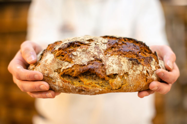 Für unser Brot verwenden wir nur Mehl, Hefe, Wasser, Salz und natürlichen Sauerteig – und sonst nichts. Die Spezialbrote enthalten zusätzlich Schrote, Saaten, Kerne und natürliche Zutaten.